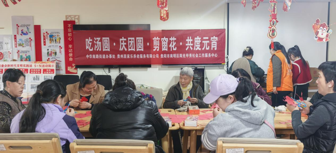 为弘扬中华优秀传统文化,营造喜庆祥和的元宵佳节氛围,2月27日,中华南路街道办事处联合博爱路社区、公园南路社区主办,贵州居家乐养老服务有限公司、南明区阳光甲秀社会工作服务中心承办的“吃汤圆·庆团圆·剪窗花·共度元宵”主题活动顺利开展。