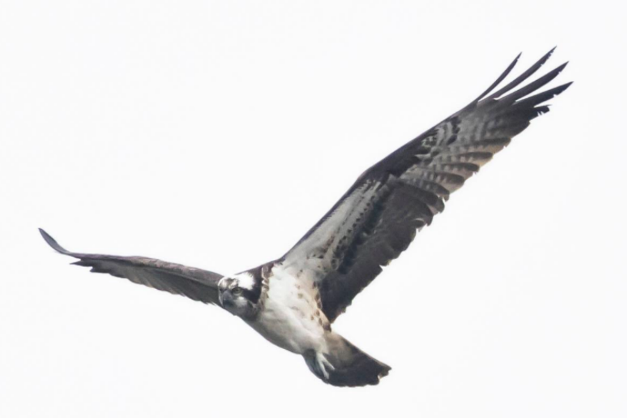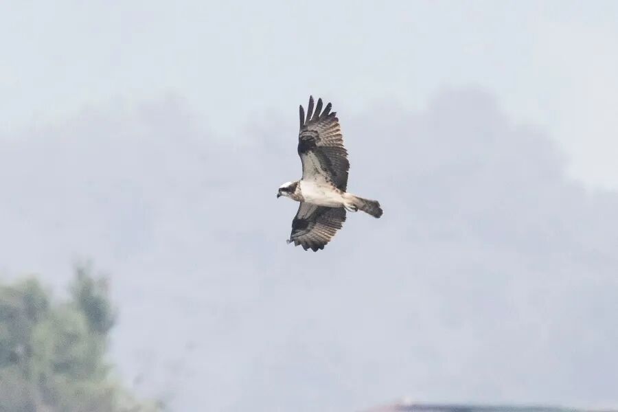 鹗,俗称鱼鹰,是鹰形目鹗科鹗属仅有的一种中型猛禽,体长51-64厘米,头部及下体为白色,具有明显的黑色贯眼纹,飞行时双翼呈独特的"M"形。作为以鱼类为主食的猛禽,鹗在贵州属于旅鸟,主要栖息于水域地带。由于种群数量稀少,该物种于2020年被《中国生物多样性红色名录》列为近危物种,并于2021年列入《国家重点保护野生动物名录》二级保护动物。
